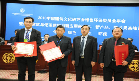 中国建筑材料企业管理协会副会长张玉祥为企业颁奖合影留念