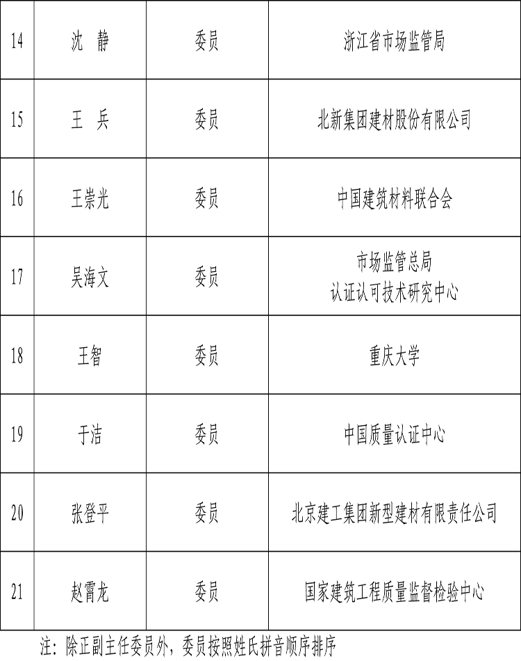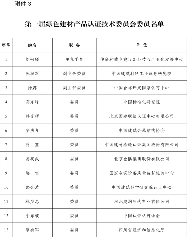 第一届绿色建材产品认证技术委员会委员名单