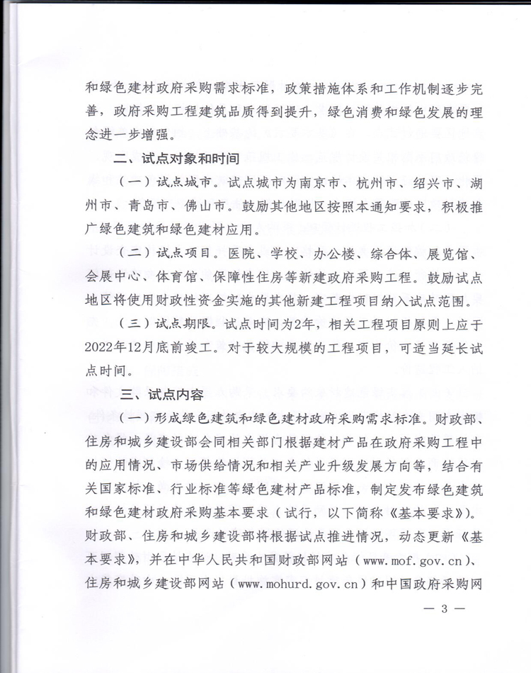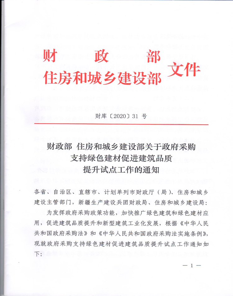 财政部住建部关于政府采购支持绿色建材提升试点通知